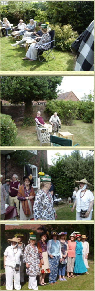 The focal point of the afternoon, the Hat Competition, enabled members to display their creative talents. So keen was the competition that Marie judging had to announce 4 winners for their individuality! Finally the‘Art Quiz’. Designed by Evie and Stan to challenge the knowledge of DLK members, this proved an enjoyable brainteaser.